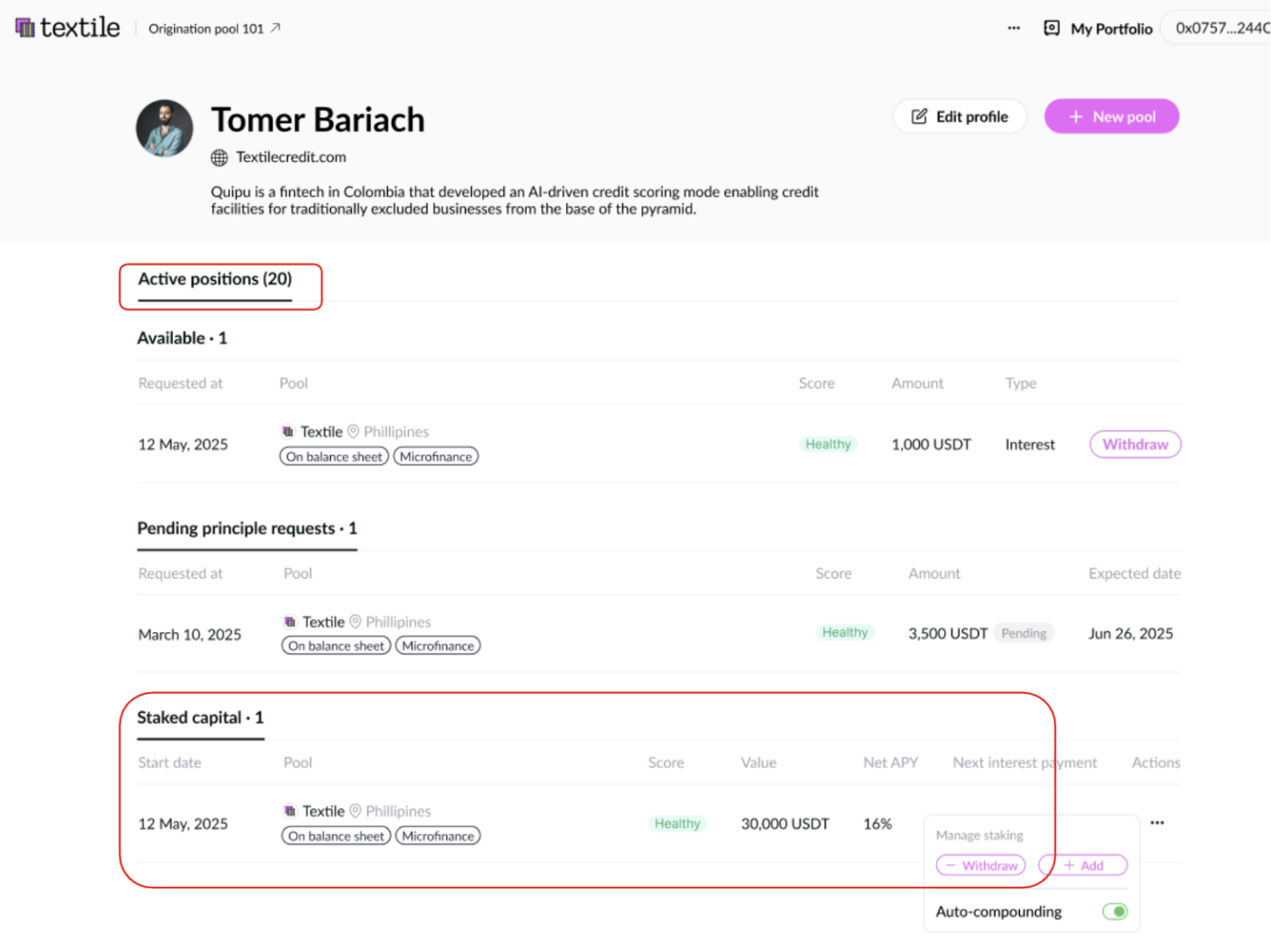 If you are both a borrower and a lender, your default tab will be My Pools. Switch to Active Positions.