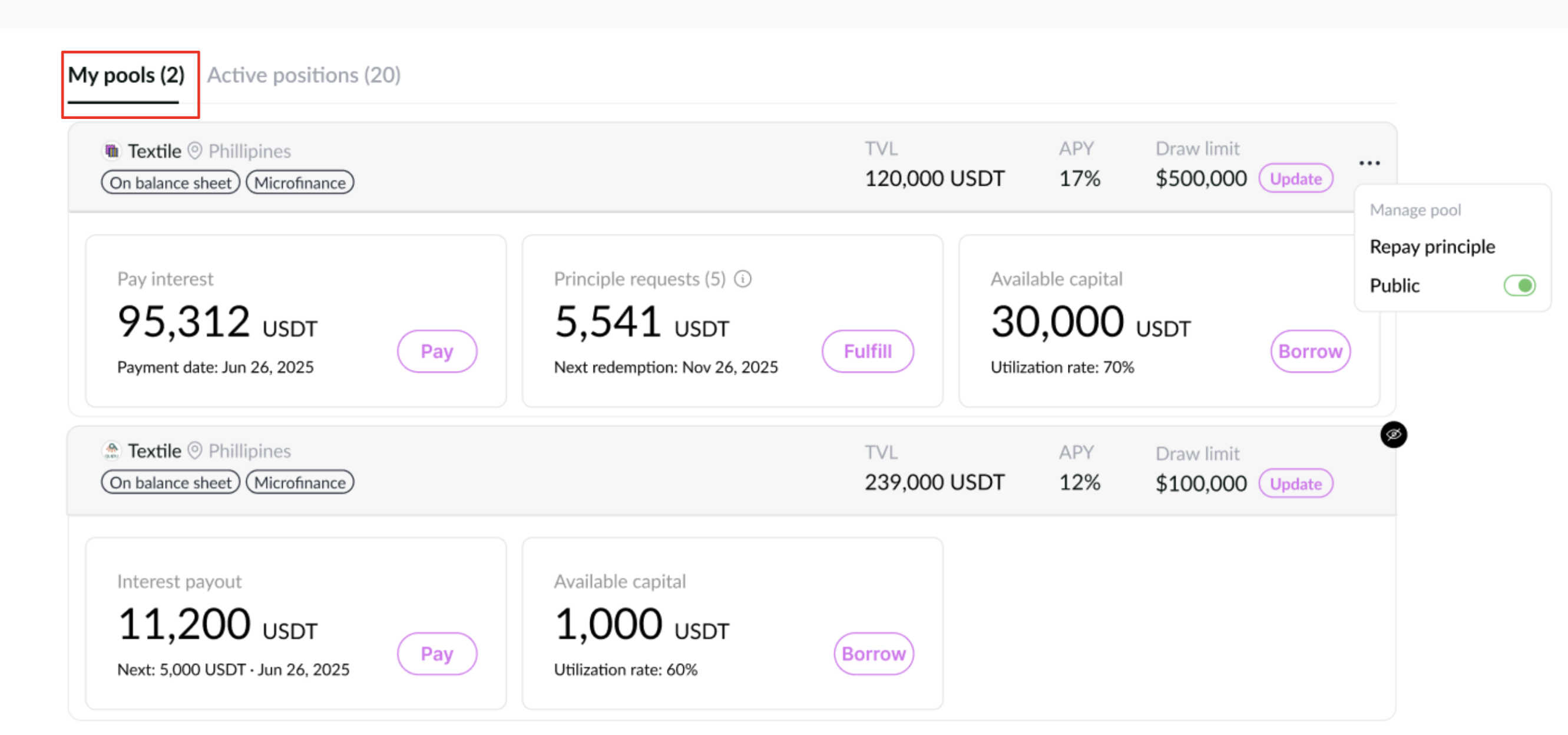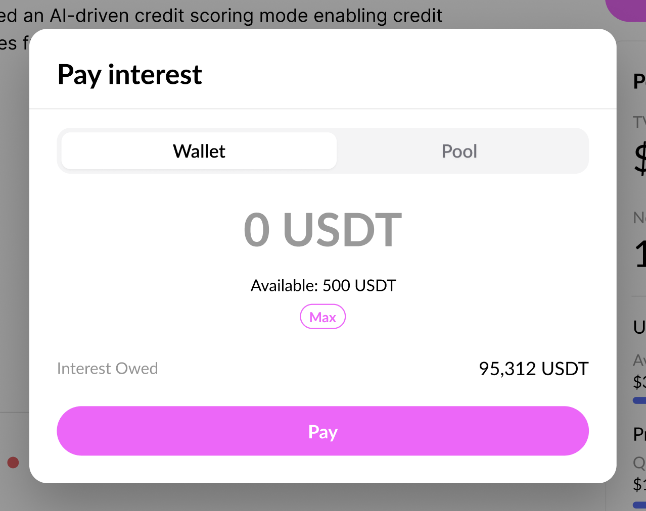 Under Interest payment, click “Pay”. This opens a pop-up where you can choose the payment source: